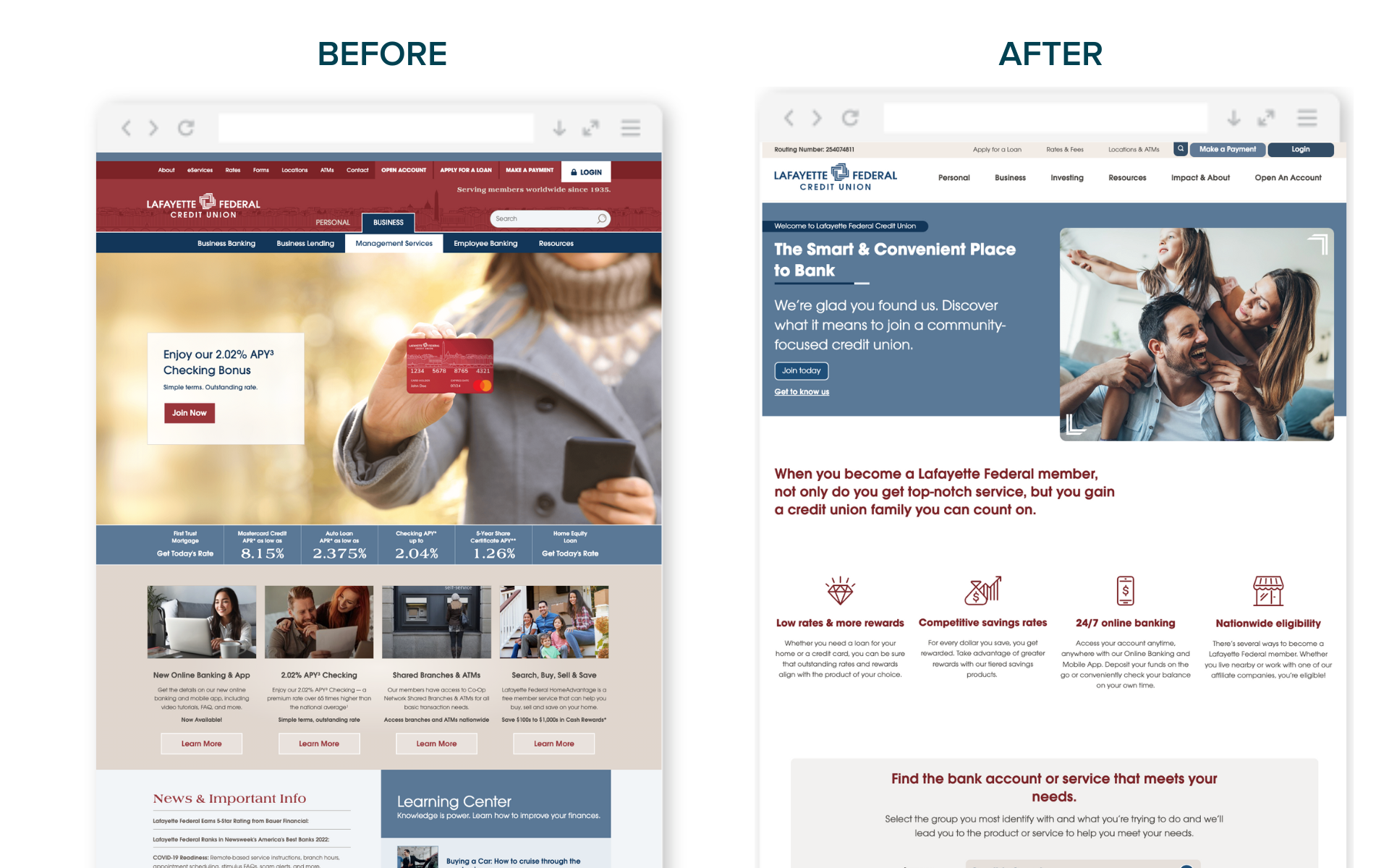 “We’re committed to empowering our members to take control of their finances, and our new website is just one way we’ve worked to make that a reality,” says Andrew Doepping, Lafayette Federal’s VP of Member Relations & Marketing. “From day one, working with PixelSpoke was a smooth experience. They were aligned with our vision to offer an improved, yet familiar site that remained true to our brand while boosting the online experience. We are pleased to have collectively accomplished this and more — banking with our credit union is more convenient and accessible than ever before.”