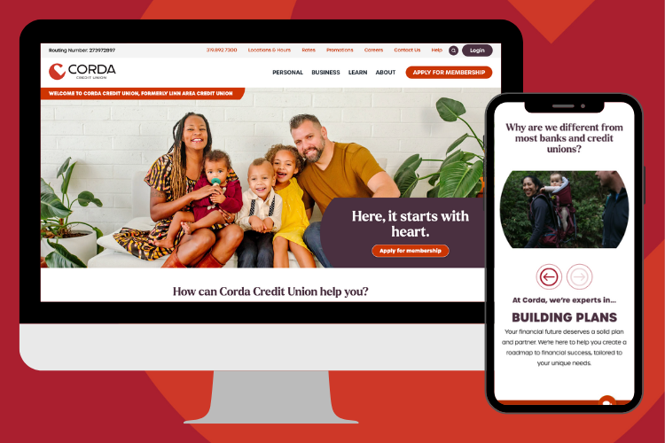 “Our new website represents our dedication to enhancing our members’ experience,” says Cherie Tilson, Director of Marketing at Corda Credit Union. “We’ve poured our hearts into creating a website that not only embodies our Corda brand, but also delivers seamless navigation, helpful resources, and engaging content for our members.”